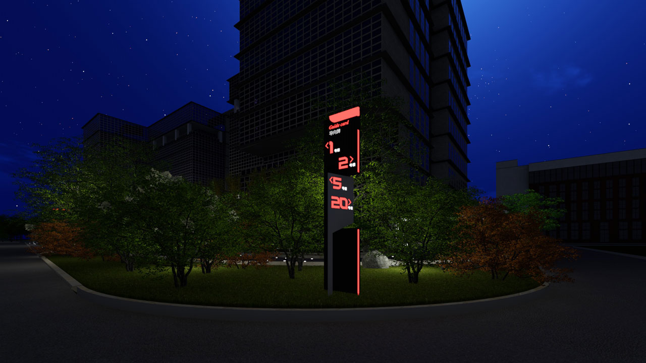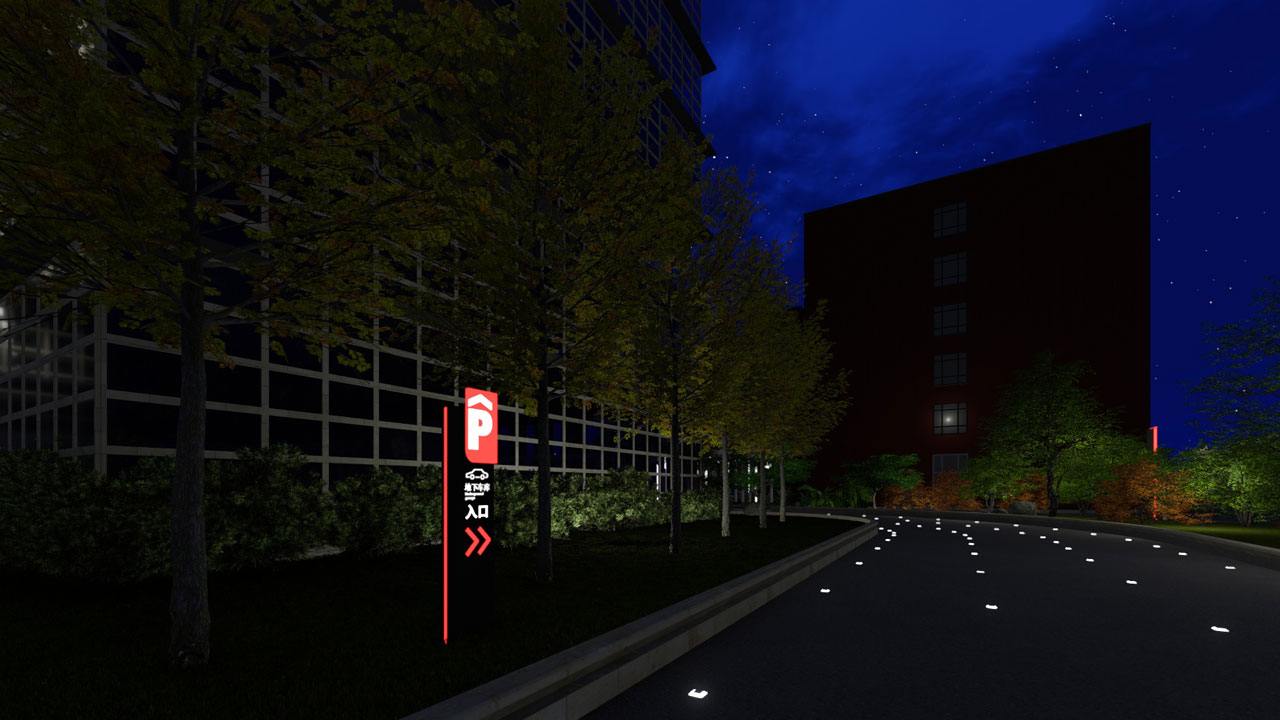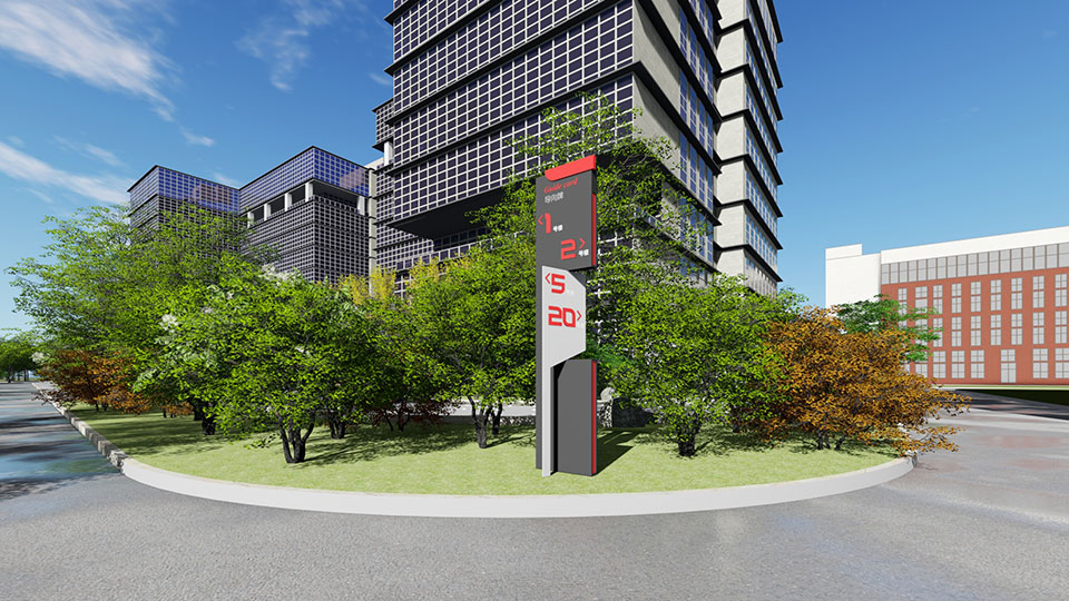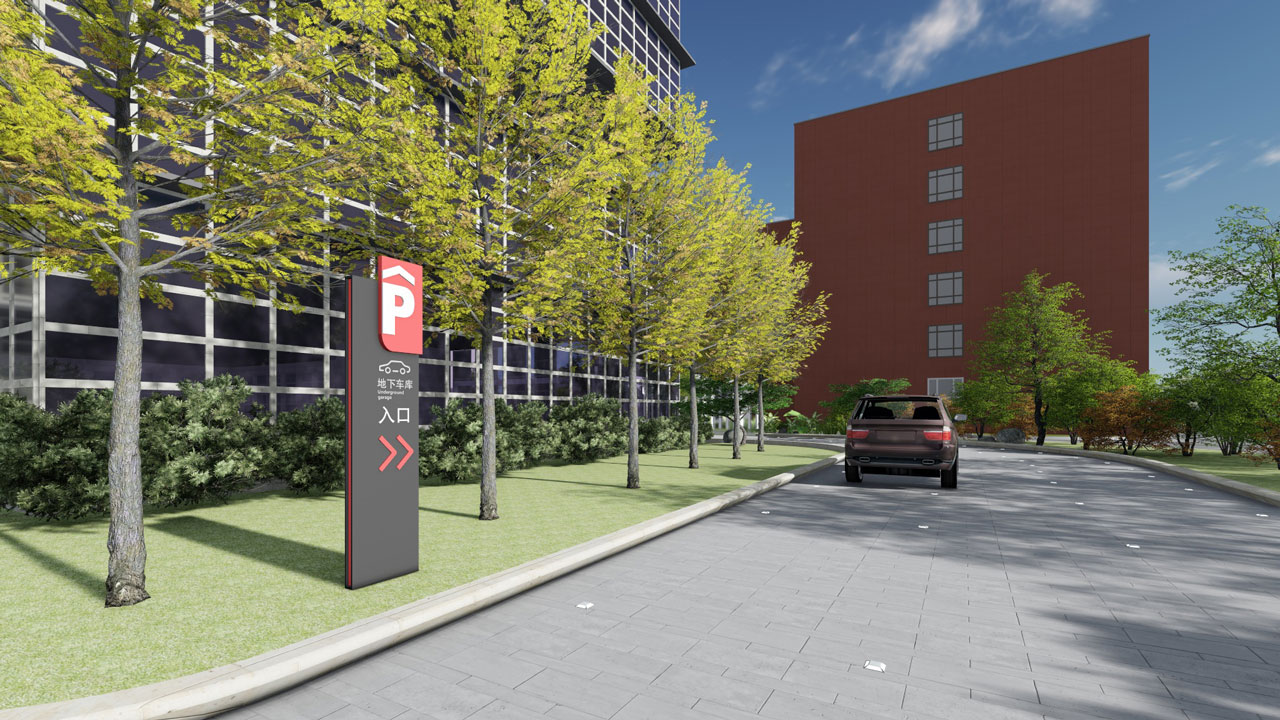 生命健康产业园位于江苏省南通市如东县,园区为典型的现代工业建筑的风格,以红黄白三色作为建筑的主要色彩,导视系统的设计以园区环境为根基,造型上追求简洁明快,色彩上与建筑立面的红色系保持一致性,融入夜间亮化系统,延长指示时效。